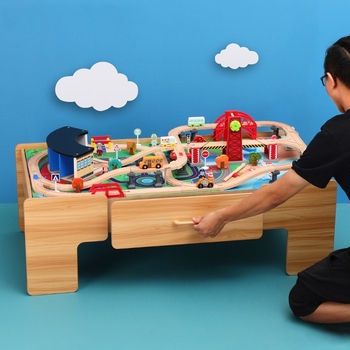 Set di treni in legno con tavolo da gioco e accessori per il treno in legno trenino giocattolo per bambini dai 3 anni